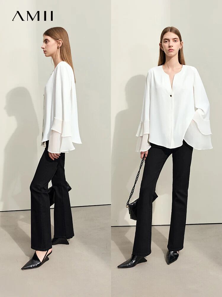 送料無料 アパレル AMII ミニマリズム 2024 レディース シフォン シャツ 春ソリッド ルーズ V ネック 二層バタフライ スリーブ レトロ ブラウス 12451037 スプリング 春物 Vネック ソリッドカラー AE121222355736850718 | mihatudai(みはつばい)ネットショッピングならmihatudai