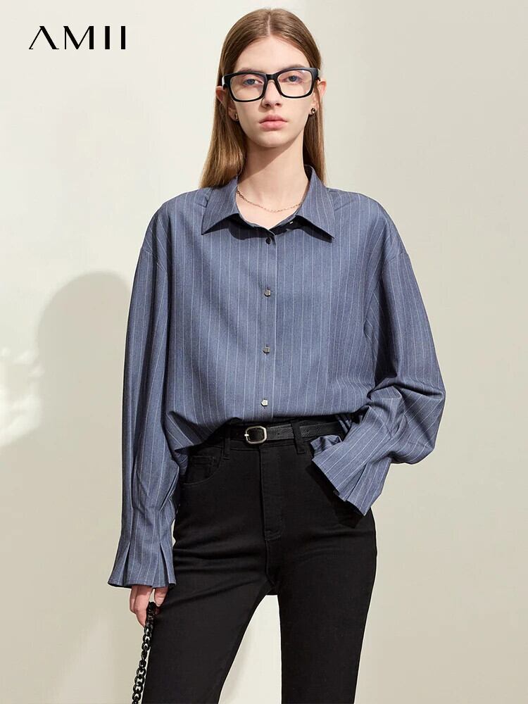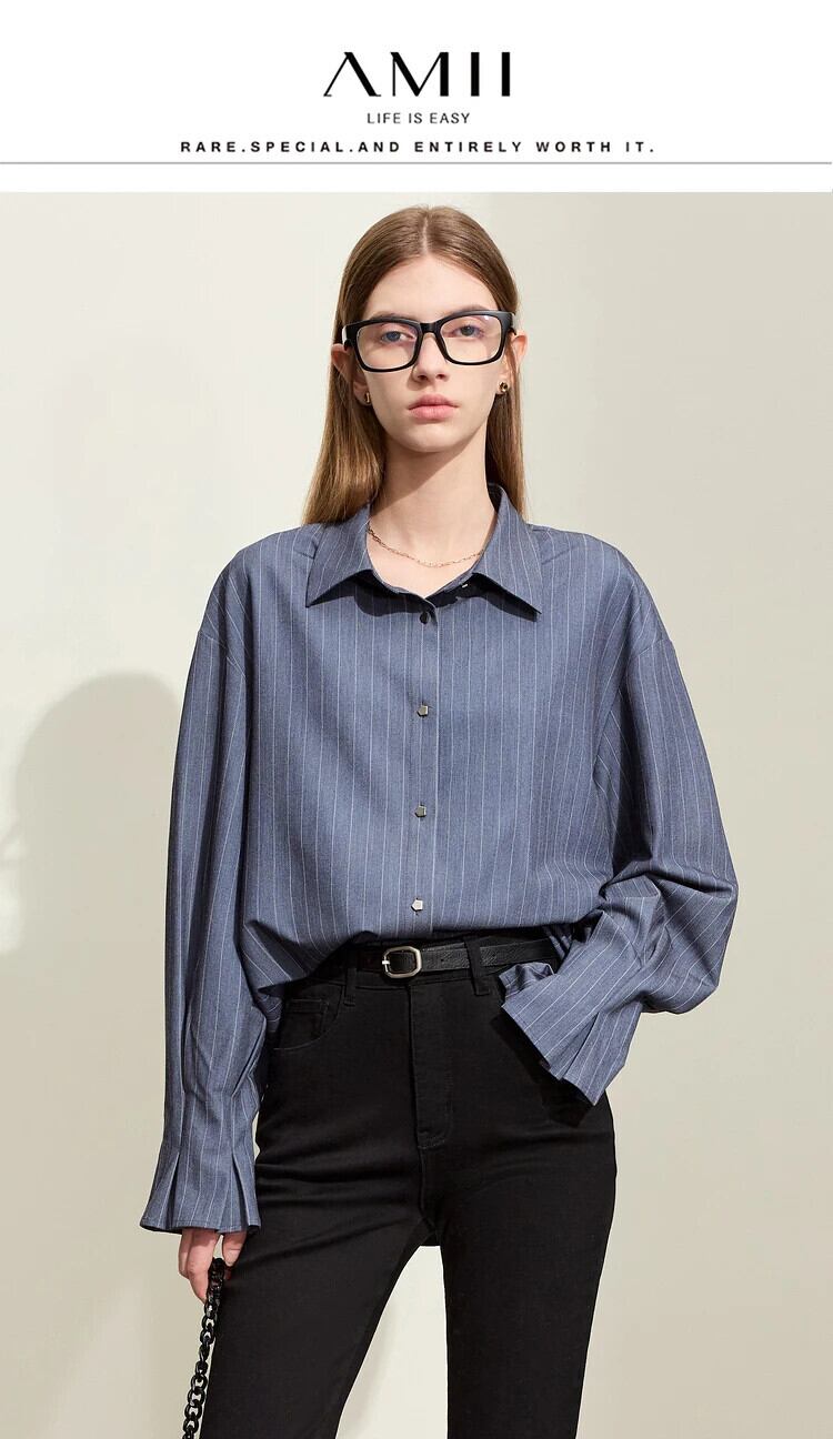 送料無料 アパレル AMII ミニマリズム 2024 女性シャツ春通勤ストライプフレアスリーブラペルルーズミッドレングストレンディシャツ 12441071 スプリング 春物 AE121222320644549001 | mihatudai(みはつばい)ネットショッピングならmihatudai