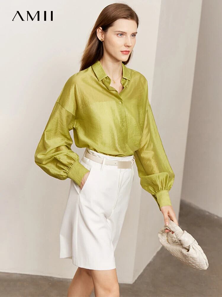 送料無料 アパレル AMII ミニマリストブラウス女性 2023 春ランタンスリーブ V ネックわずかに透明な通勤トップス 72341030 スプリング 春物 Vネック AE121222370108844883 | mihatudai(みはつばい)ネットショッピングならmihatudai