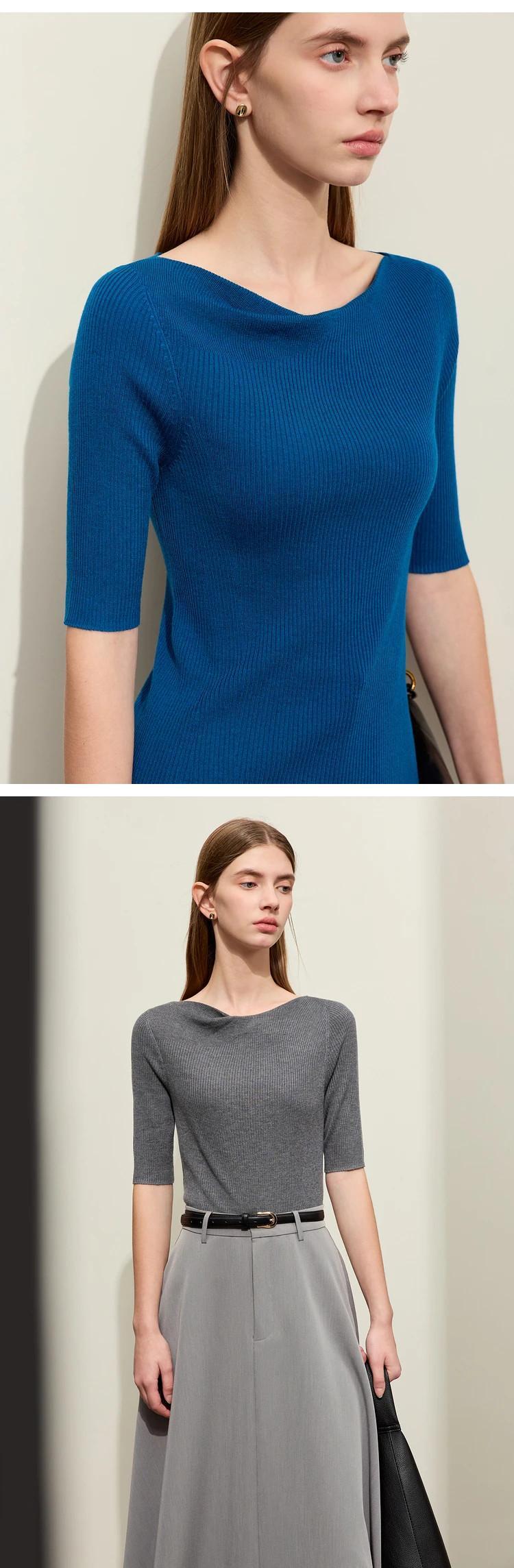 送料無料 アパレル AMII ミニマリズムニットウェア女性 2024 春スリムミッドスリーブスラッシュネックベーシックストレッチソリッドトップス 12421053 スプリング 春物 ソリッドカラー AE12122238978318061 | mihatudai(みはつばい)ネットショッピングならmihatudai