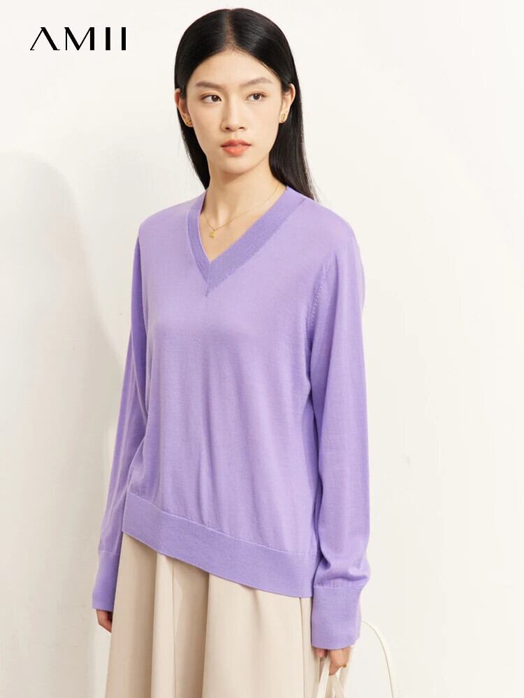 送料無料 アパレル AMII ミニマリズム 100% ウールプルオーバーセーター女性秋 2022 V ネック通勤ニットトップス 12240919 オータム 秋物 Vネック AE121222355493591541 | mihatudai(みはつばい)ネットショッピングならmihatudai