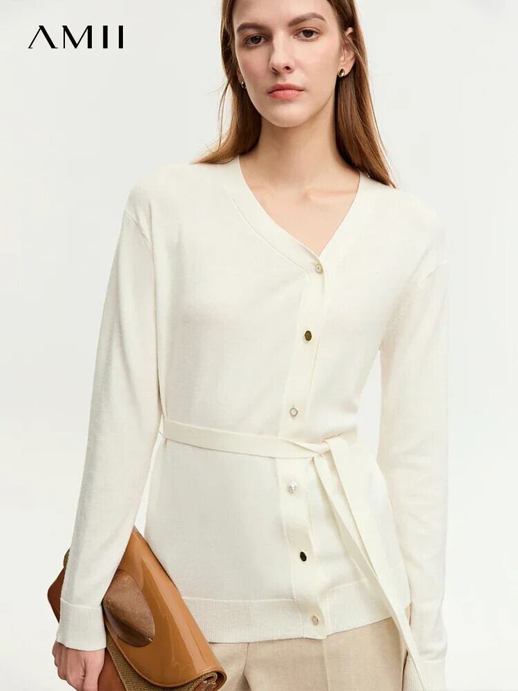 送料無料 アパレル AMII 中国女性ウールセーター 2023 秋ニットカーディガンコントラストステッチ V ネックベルト斜めシャツ 12323060 オータム 秋物 ハーネス Vネック AE121222368395161626 | mihatudai(みはつばい)ネットショッピングならmihatudai