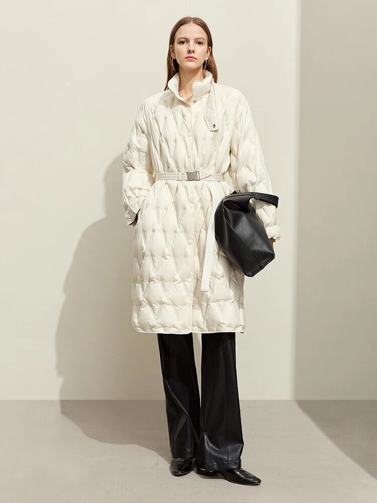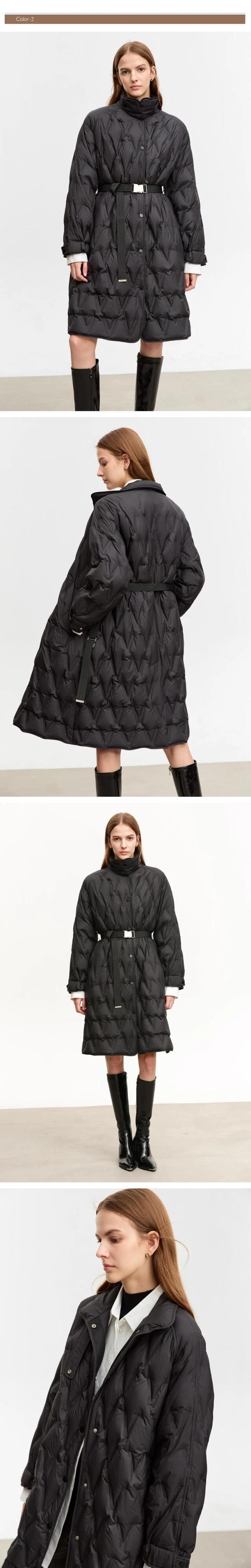 送料無料 アパレル AMII ミニマリズム 2023 ダウンパファージャケット女性暖かいモックネックダイヤモンドチェック柄ベルト冬ロング厚い女性生き抜く 12364008 ウィンター 冬物 ハーネス AE121222387063736076