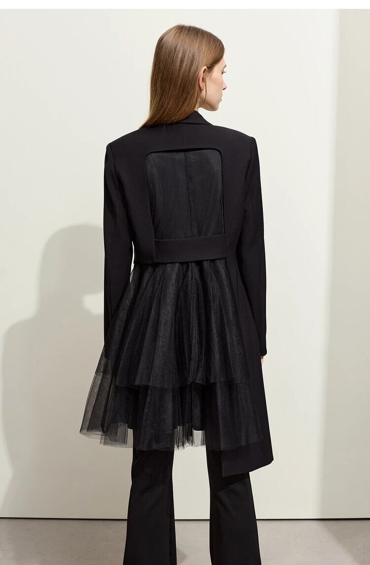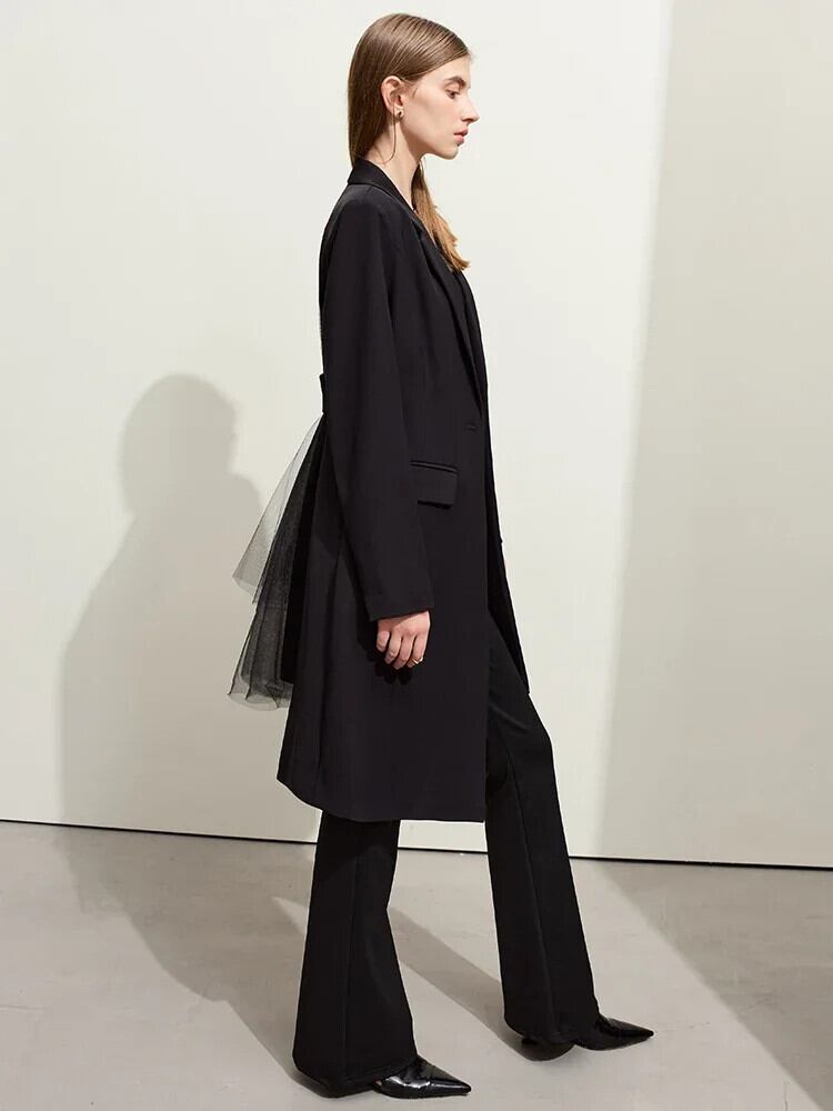 送料無料 アパレル AMII ミニマリストスーツ女性 2023 秋スプライスメッシュシングルボタン偽 2 ベーシックロングショルダーパッド入りブレザー 12353052 オータム 秋物 AE121222392912385435