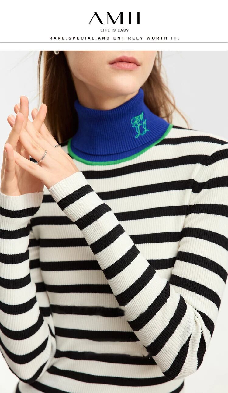 送料無料 アパレル AMII ミニマリスト 2023 冬のストライプの女性のセータースリムフィットベースシャツ刺繍タートルネックトップス 12343449 ウィンター 冬物 AE121222382380954881 | mihatudai(みはつばい)ネットショッピングならmihatudai