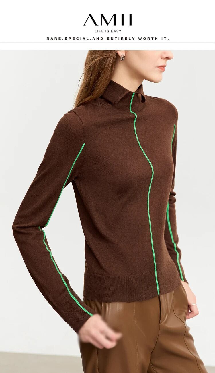 送料無料 アパレル AMII 2023 秋のセーターの女性の通勤コントラストステッチラペルメラードカラースリムソフトニットジャンパー女性 12343193 オータム 秋物 AE121222353294983686 | mihatudai(みはつばい)ネットショッピングならmihatudai