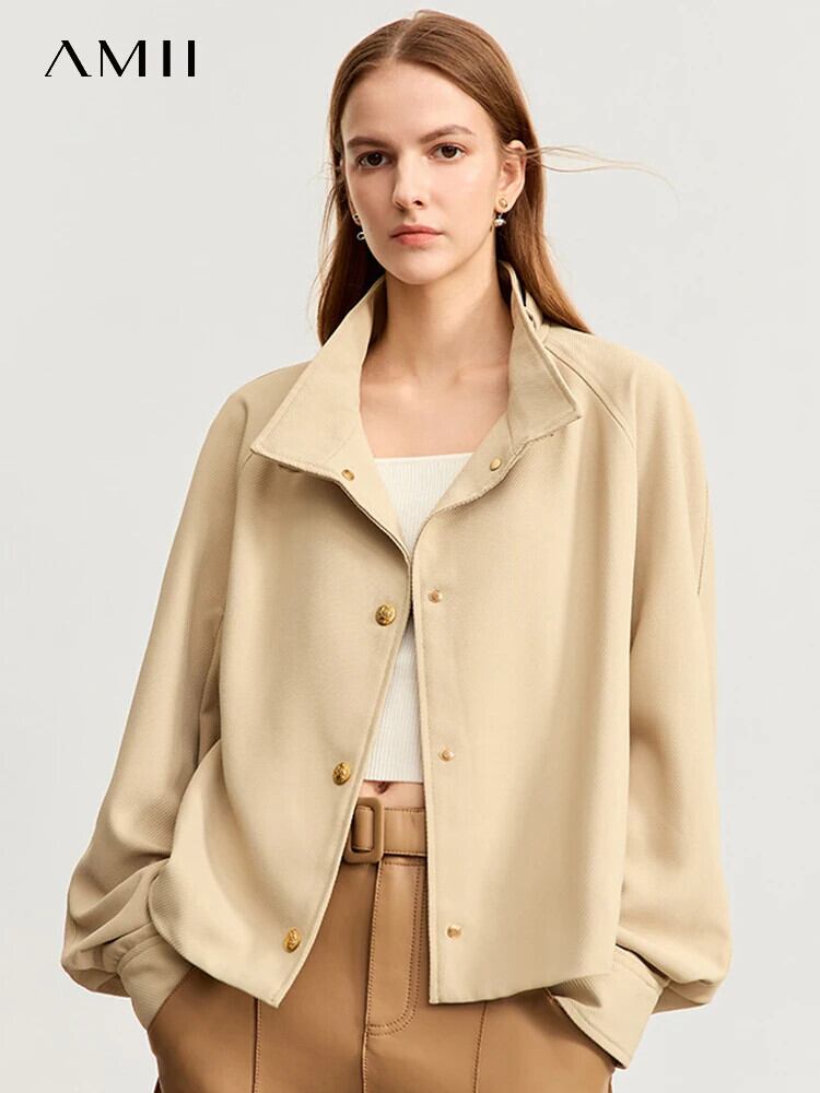 送料無料 アパレル AMII ミニマリスト軍事女性コート 2023 秋ユニセックスジャケットスタンドカラーメタルバックルハンサムルーズレディ生き抜く 72373001 オータム 秋物 AE121222351417912236 | mihatudai(みはつばい)ネットショッピングならmihatudai