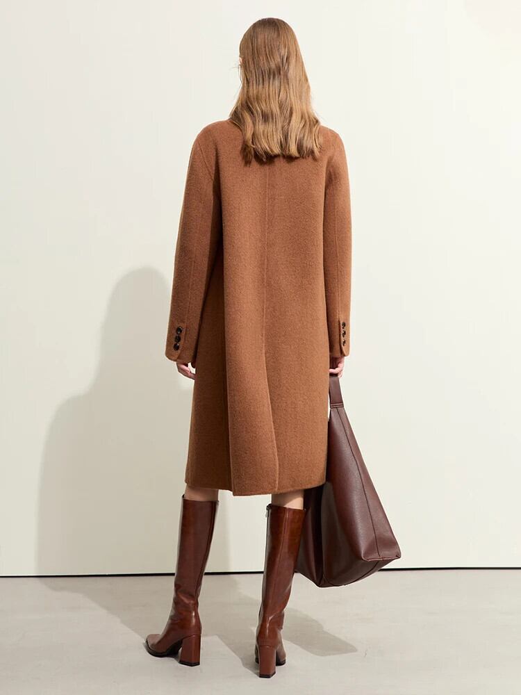 送料無料 アパレル AMII シルクウールコートの女性 2023 冬ロングブレザー襟 Clic ダブルブレストウール両面アウター 12344210 ウィンター 冬物 AE121222354068655704