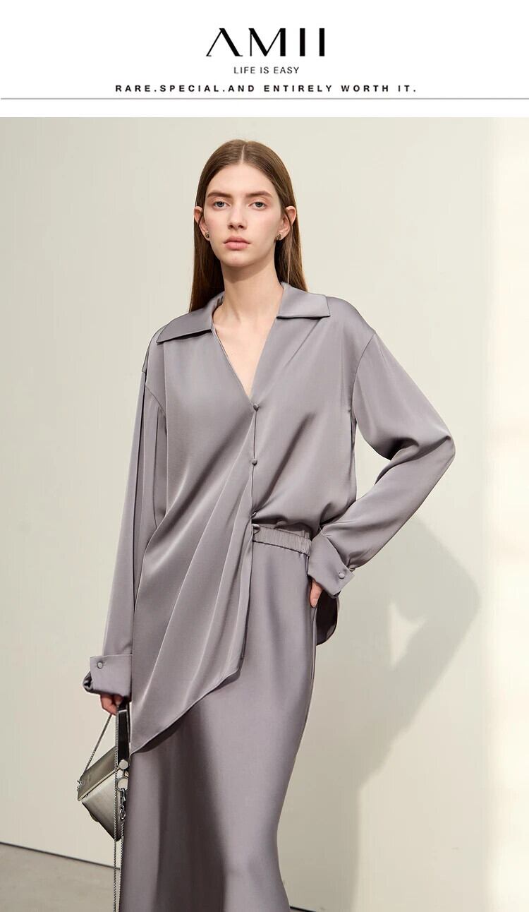 送料無料 アパレル AMII ミニマリズム グレー部門シフォンシャツ女性 2024 春ハーフオープンカラー裾ルーズブラウス 12441166 スプリング 春物 AE12122234089704821 | mihatudai(みはつばい)ネットショッピングならmihatudai