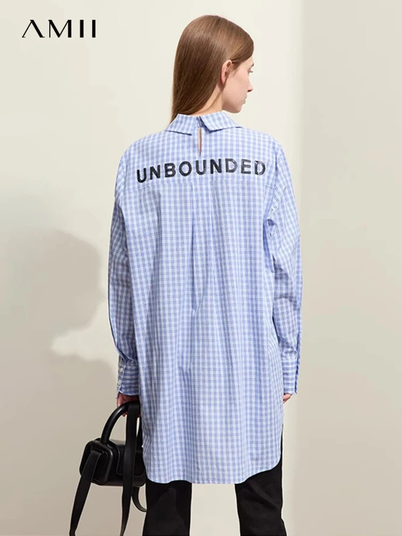 送料無料 アパレル Amii ミニマリズムシャツ女性 2024 春ラペル文字ビーズ刺繍チェック柄ネクタイコットンルーズロングブラウス 12451049 スプリング 春物 AE121222350666897943 | mihatudai(みはつばい)ネットショッピングならmihatudai