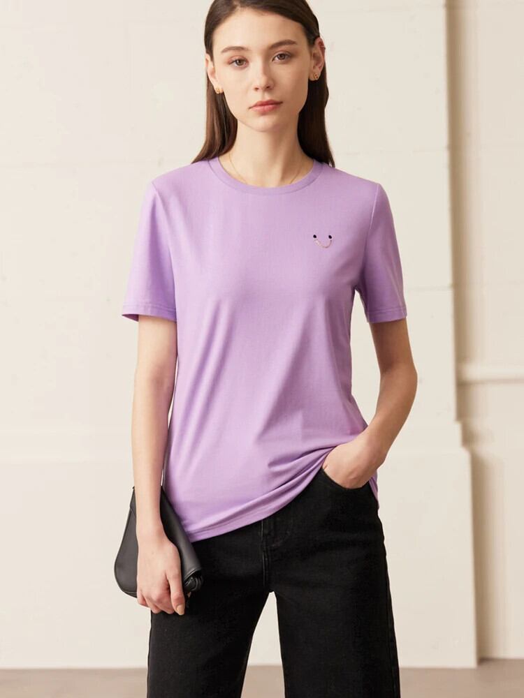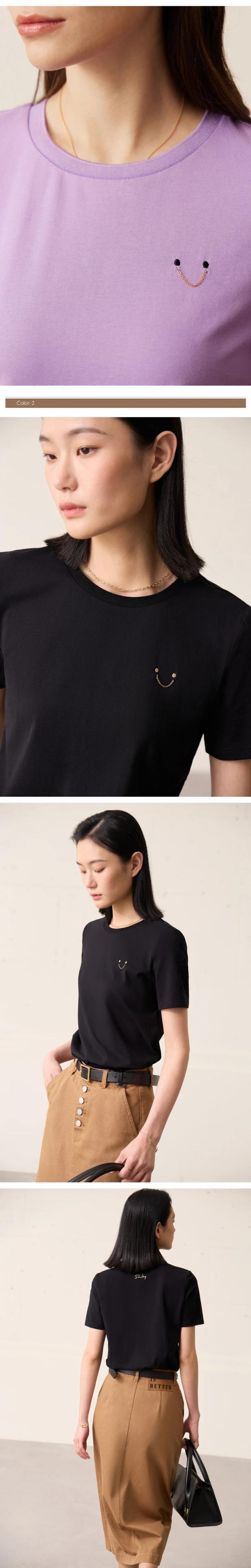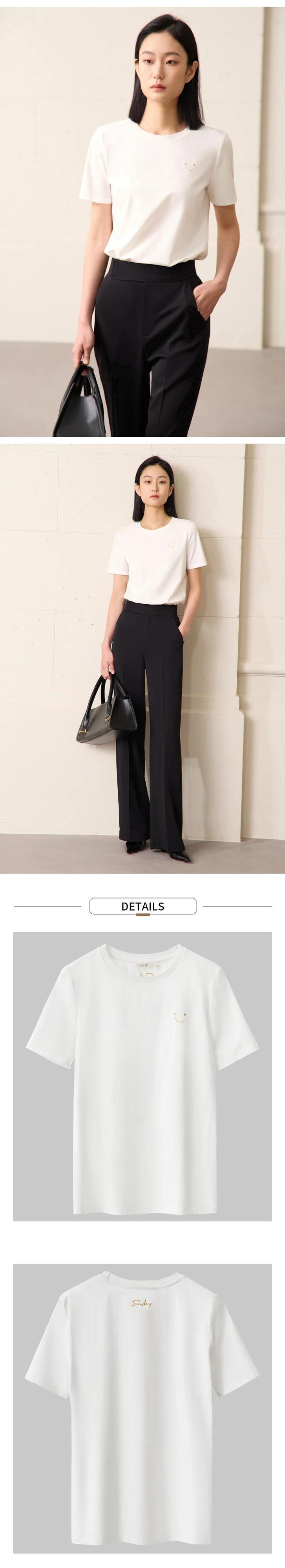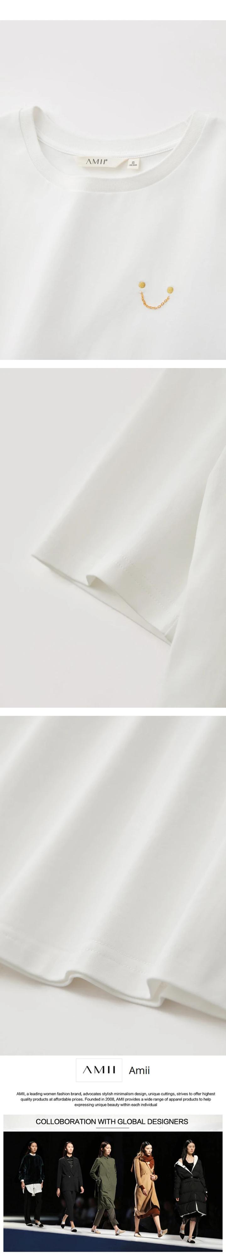 送料無料 アパレル AMII ミニマリズムトップ女性 2023 夏 Tシャツ O ネック綿刺繍笑顔半袖ストレート Tシャツ 12362003 ショート コットン ハーフスリーブ サマー 夏物 Oネック AE121222345974401229 | mihatudai(みはつばい)ネットショッピングならmihatudai