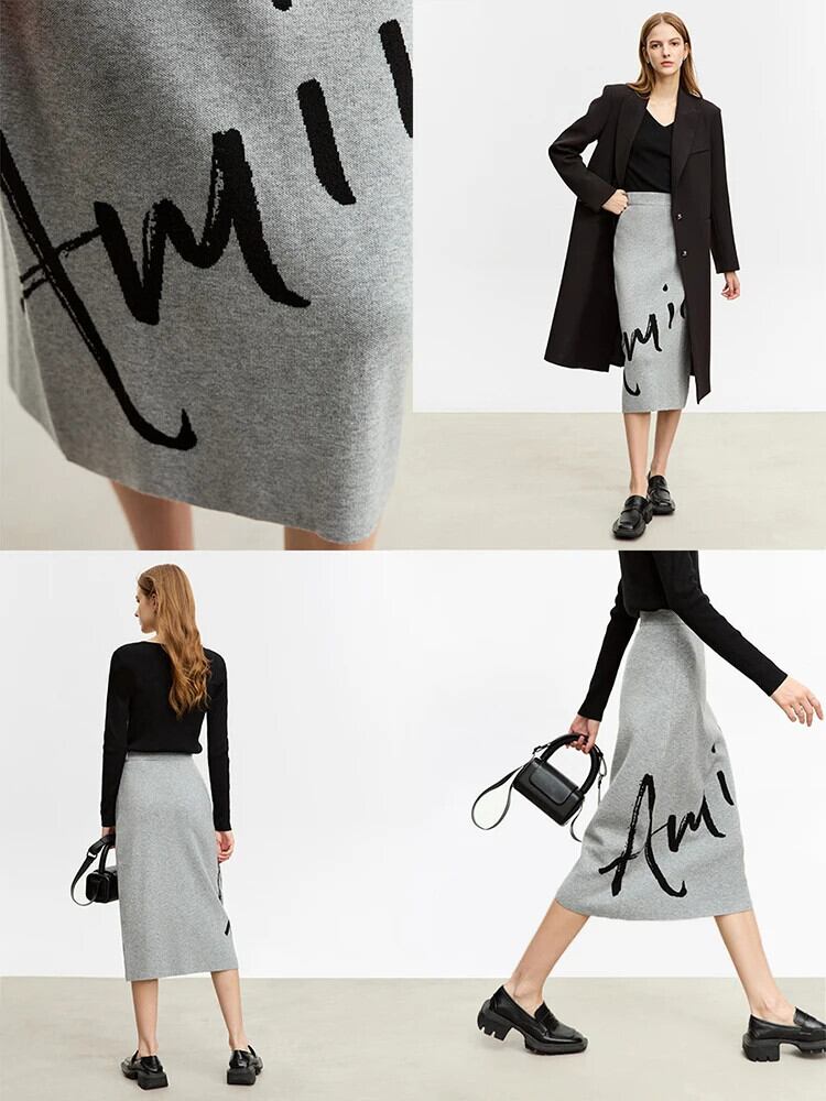 送料無料 アパレル AMII ミニマリストウールジャカードスカート女性 2023 冬ミッドレングススリムストレートシンプルな通勤 A ラインスカート 12344129 ウィンター 冬物 Aライン AE121222334857822760 | mihatudai(みはつばい)ネットショッピングならmihatudai