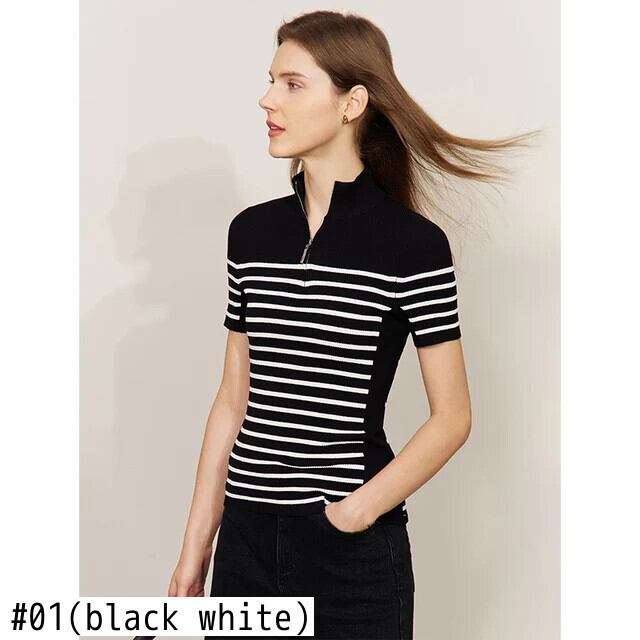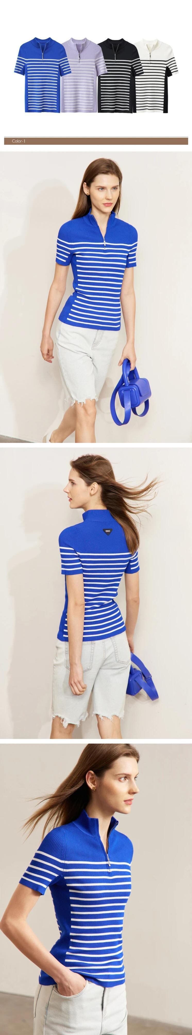 送料無料 アパレル AMII ミニマリズムストライプニットレディースニット 2023 夏シックなスタンドカラーオフィスレディセーター 72341020 サマー 夏物 会社 学校 通勤や通学にも AE121222339436085882 | mihatudai(みはつばい)ネットショッピングならmihatudai