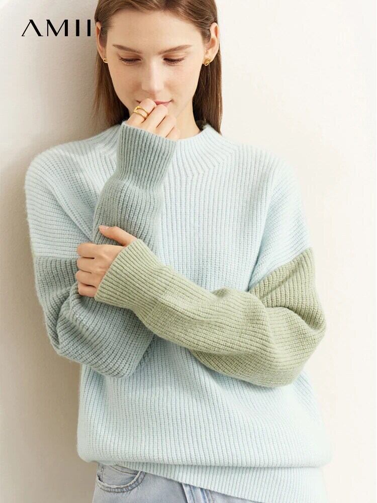 送料無料 アパレル AMII ミニマリズムニットセーター女性秋 2022 暖かいルーズモックネックパネルスプライシングシックなプルオーバートップス 12241067 オータム 秋物 AE12122232997252034 | mihatudai(みはつばい)ネットショッピングならmihatudai