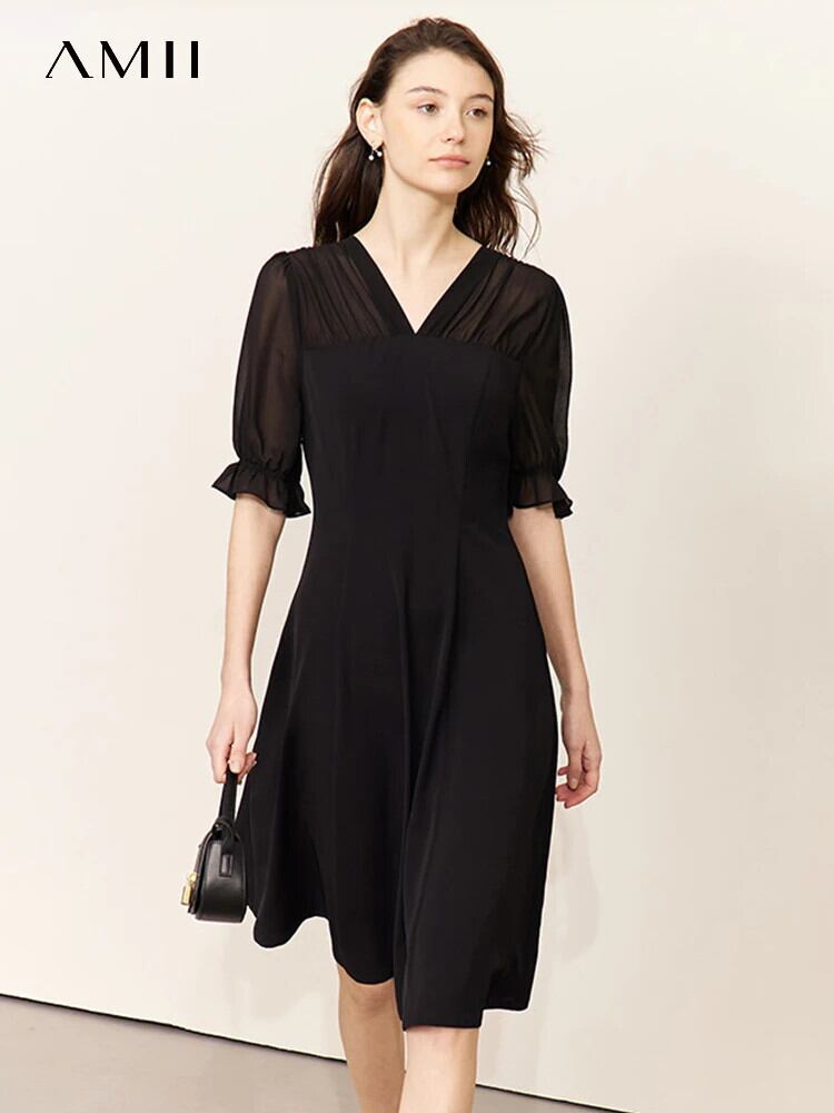送料無料 アパレル AMII ミニマリズムレディースドレス V ネックパフスリーブブラックソリッド Vestido シフォン 2023 春レディースドレス 12322050 スプリング 春物 Vネック ソリッドカラー AE121222363634305276 | mihatudai(みはつばい)ネットショッピングならmihatudai