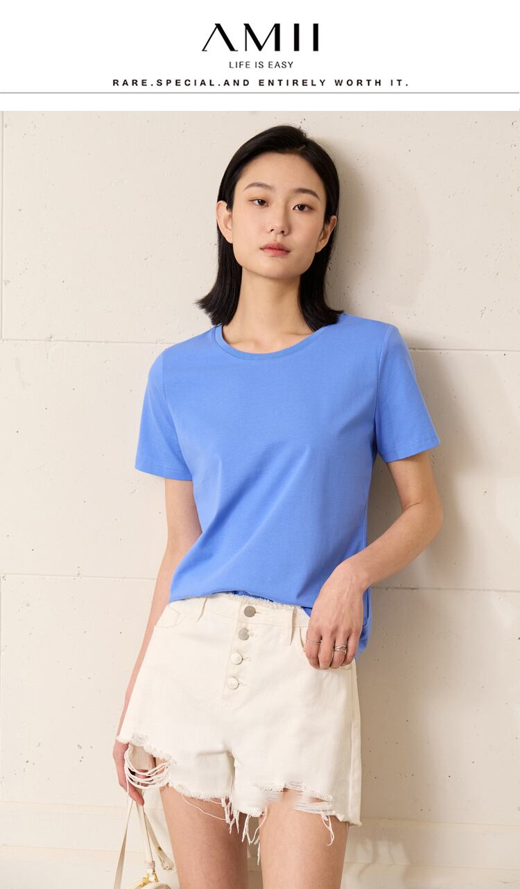 送料無料 アパレル AMII ミニマリズム O ネックベーシック Tシャツ女性半袖レディース Tシャツ 2023 夏 4 色レディース 12322122 ショート ハーフスリーブ サマー 夏物 Oネック AE121222342078750130 | mihatudai(みはつばい)ネットショッピングならmihatudai