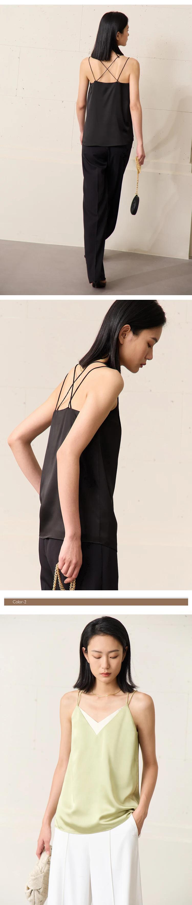 送料無料 アパレル AMII ミニマリズム対照的な色トップ女性 2023 夏シフォンブラックタンク & キャミソールストラップシャツセクシーな女性のベスト 12342233 サマー 夏物 AE121222322471118754 | mihatudai(みはつばい)ネットショッピングならmihatudai
