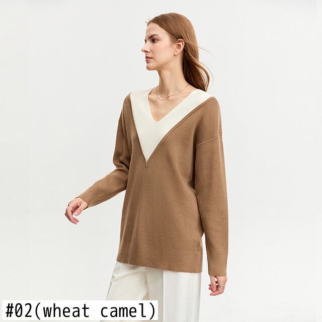 送料無料 アパレル AMII ミニマリスト冬のセーターの女性 2023 ルーズニットトップスルーズスプライシング長袖 V ネックプルオーバー 12344161 ロング ウィンター 冬物 Vネック AE121222334152041852 | mihatudai(みはつばい)ネットショッピングならmihatudai