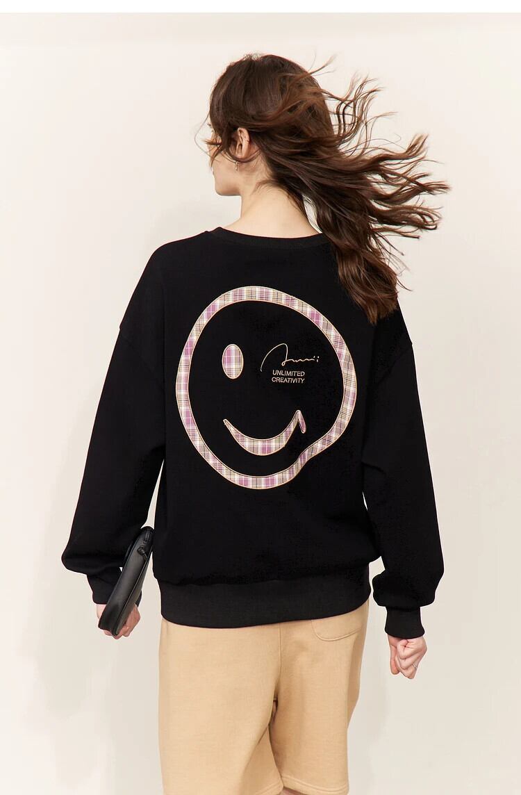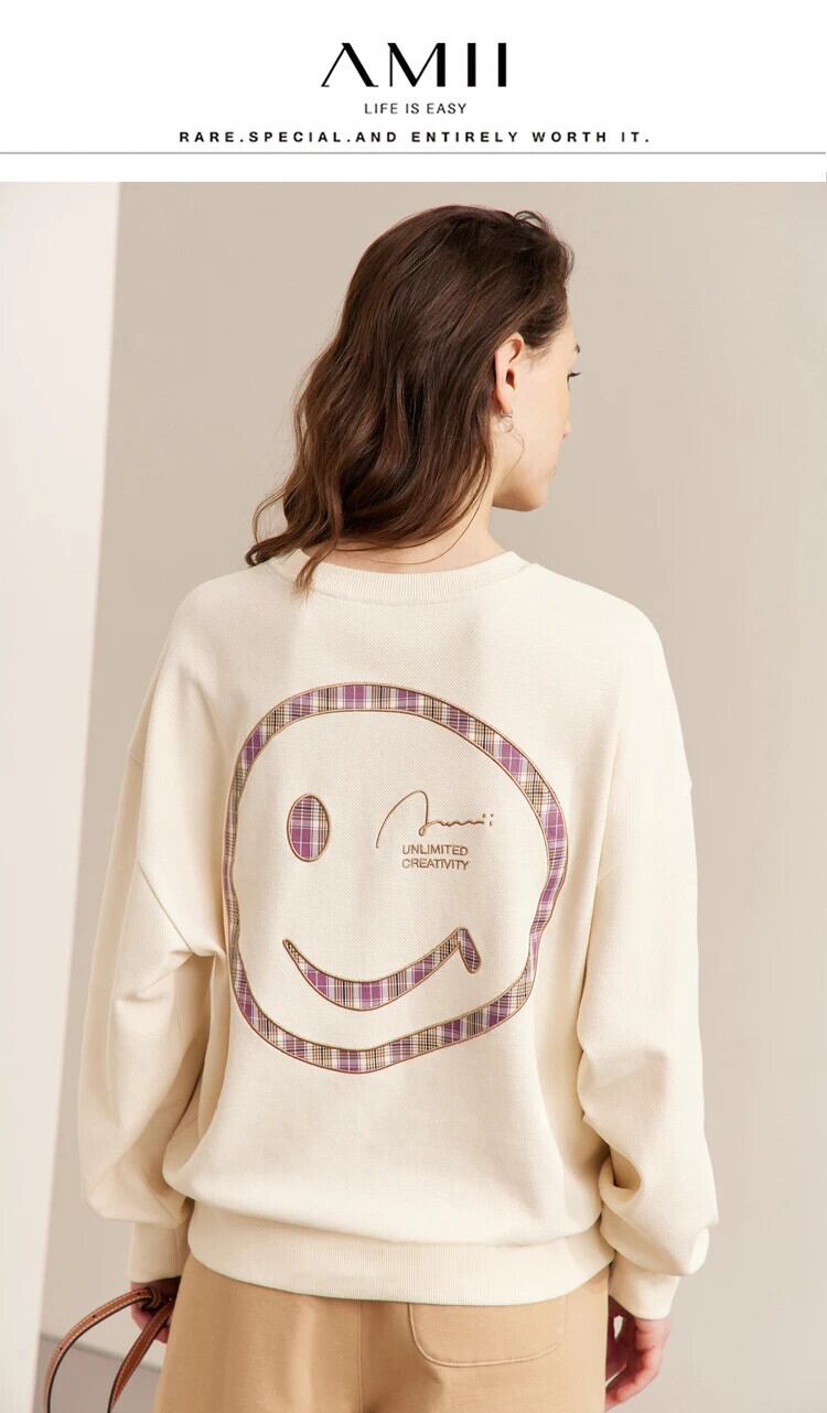 送料無料 アパレル AMII ミニマリズム女性のトップ 2023 春 Y2k 服女性スマイル刺繍ルーズスウェットシャツプルオーバー 12341131 スプリング 春物 AE121222324446217454