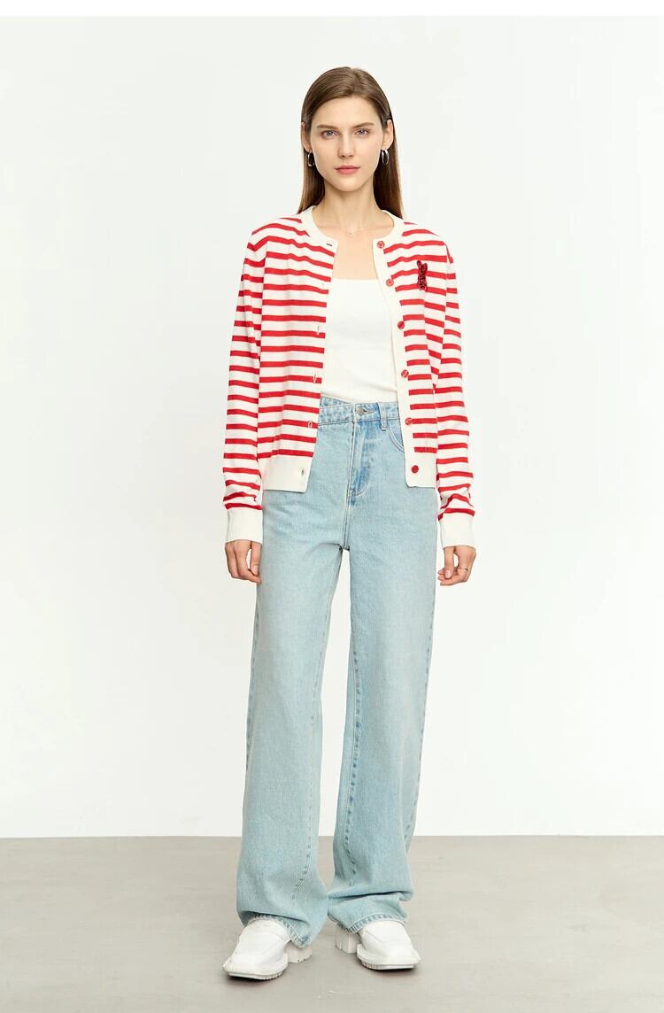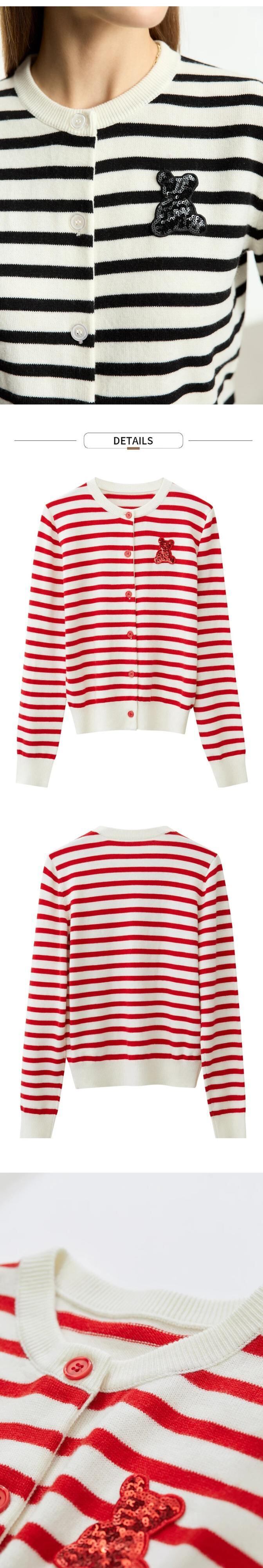 送料無料 アパレル AMII ミニマリズム 2023 クリスマスセーター女性ストライプ O ネッククマ刺繍長袖カーディガンニットコート 12343195 ロング Oネック AE121222384536613477 | mihatudai(みはつばい)ネットショッピングならmihatudai