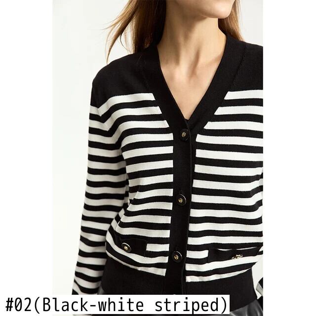 送料無料 アパレル AMII ミニマリスト 2023 秋の女性カーディガンルーズ V ネックストライプフランスオフィスレディ小さな香りニットセーター 12343377 オータム 秋物 Vネック 会社 学校 通勤や通学にも AE12122239199132568 | mihatudai(みはつばい)ネットショッピングならmihatudai