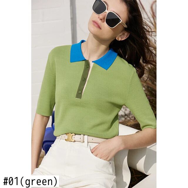 送料無料 アパレル AMII ミニマリズム ポロネック プルオーバー 2023 夏コントラストカラー半袖レディースストレートニット 12341203 ショート ハーフスリーブ サマー 夏物 AE121222388059027661 | mihatudai(みはつばい)ネットショッピングならmihatudai