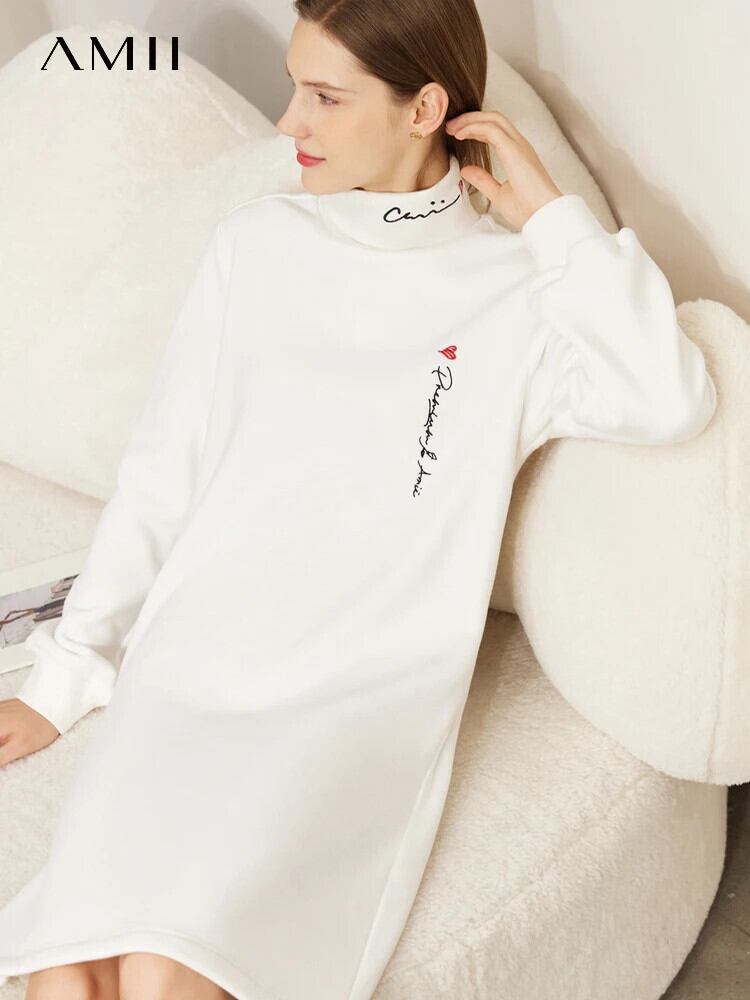 送料無料 アパレル AMII ミニマリズムミディドレスの女性 2022 冬の通勤タートルネック文字刺繍ロングトレーナー Vestidos 12260079 ウィンター 冬物 AE121222365762908673 | mihatudai(みはつばい)ネットショッピングならmihatudai