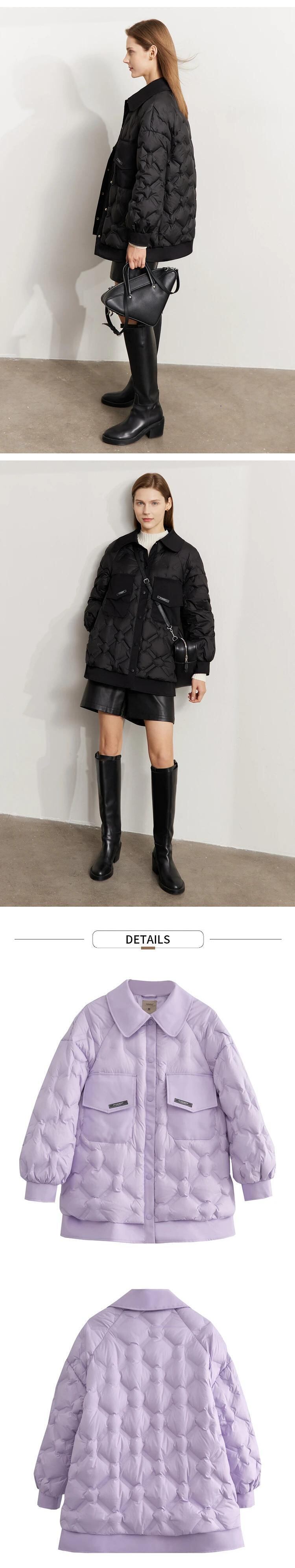 送料無料 アパレル AMII ミニマリストダウンコートの女性 2023 冬ミディアムロングルーズターンダウン襟暖かい通勤固体ジャケット 72270068 ウィンター 冬物 ソリッドカラー AE121222362264552554
