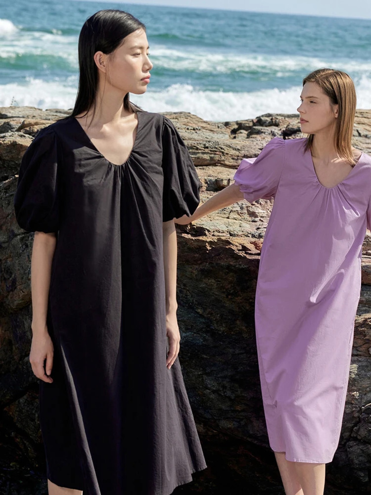 送料無料 アパレル AMII ミニマリズムドレス女性 2022 夏プルオーバーパフスリーブ綿 100% Vestidos 女性ドレス 12240381 コットン サマー 夏物 AE121222329327568568 | mihatudai(みはつばい)ネットショッピングならmihatudai