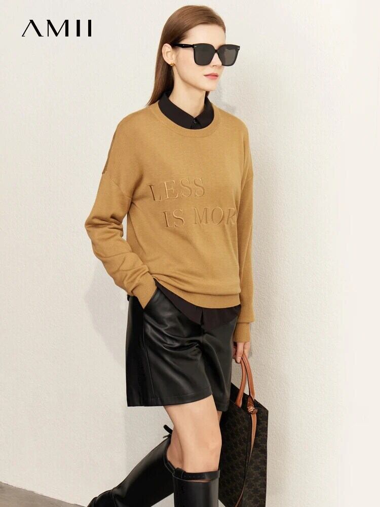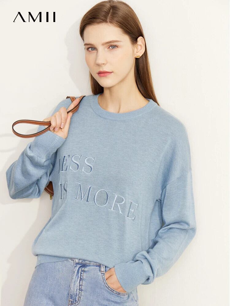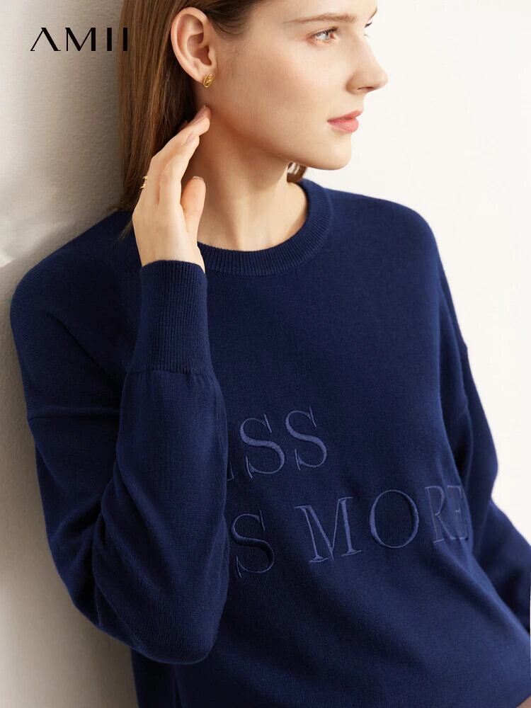送料無料 アパレル AMII ミニマリズムニットセーター女性 2022 秋レター刺繍ルーズ通勤プルオーバートップス 12241092 レッド オータム 秋物 AE121222372887176387 | mihatudai(みはつばい)ネットショッピングならmihatudai