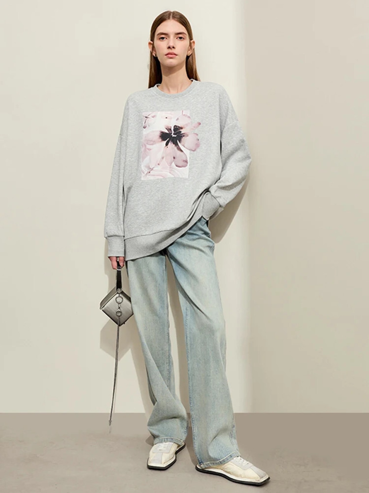送料無料 アパレル AMII ミニマリズム 2024 春パーカー女性クルーネック袖花プリントルーズミッドレングスストリートトップス 12421008 スプリング 春物 フラワーデザイン AE121222376858930526 | mihatudai(みはつばい)ネットショッピングならmihatudai