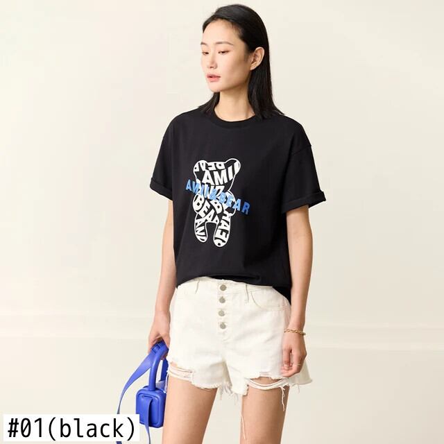 送料無料 アパレル AMII ミニマリズムレターベアプリント Tシャツ女性 2023 夏袖トップスホワイトルーズ Tシャツ 12322044 サマー 夏物 AE121222364669079366 | mihatudai(みはつばい)ネットショッピングならmihatudai