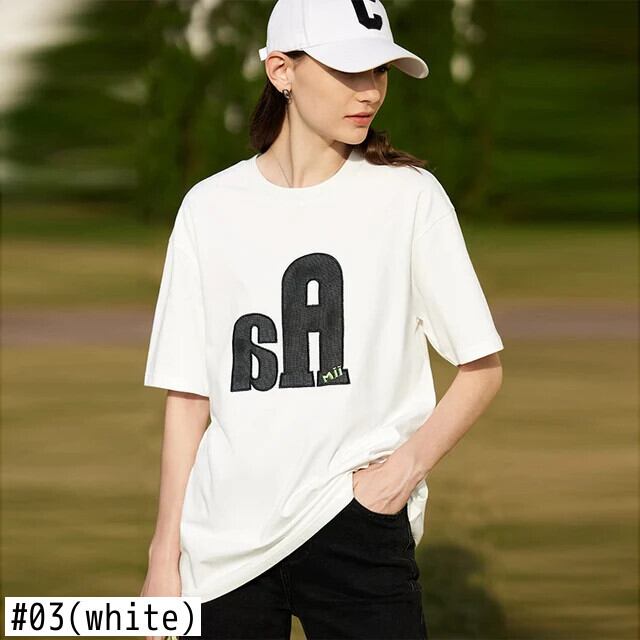 送料無料 アパレル AMII ミニマリズムレターアップリケ袖ルーズ Tシャツ女性 2023 夏綿 100% トップス 12322043 コットン サマー 夏物 AE121222384165435114 | mihatudai(みはつばい)ネットショッピングならmihatudai