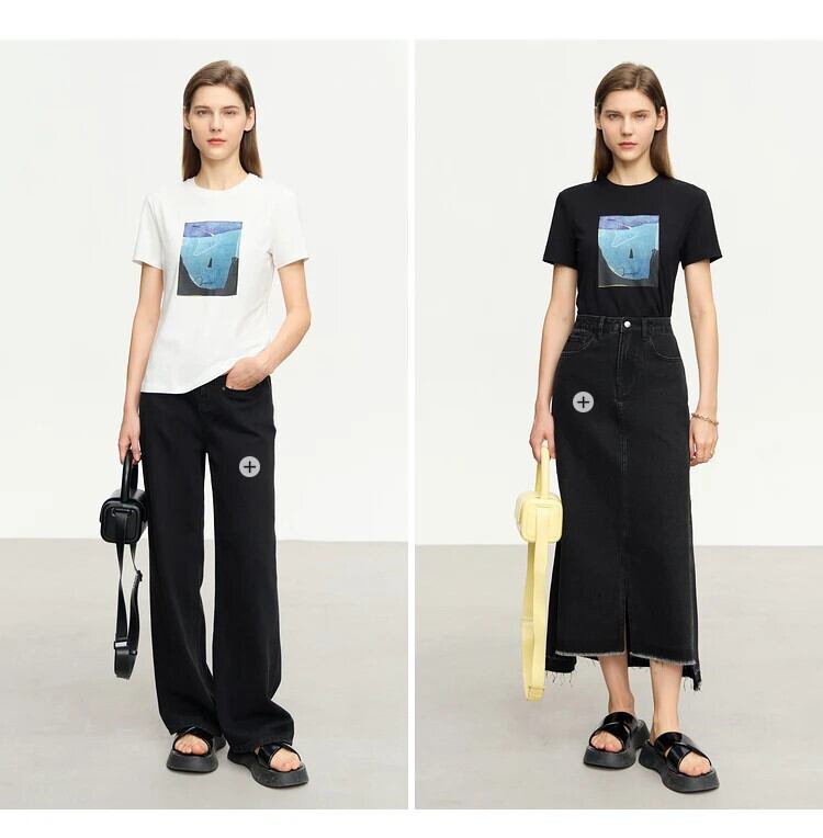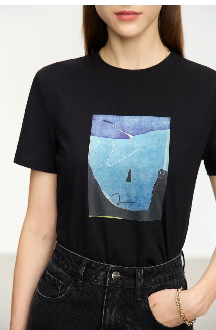 送料無料 アパレル AMII ミニマリズムアートプリント Tシャツ女性 2023 夏 O ネック半袖トップ女性 Tシャツ 12322147 ショート ハーフスリーブ サマー 夏物 Oネック AE121222325350976970 | mihatudai(みはつばい)ネットショッピングならmihatudai