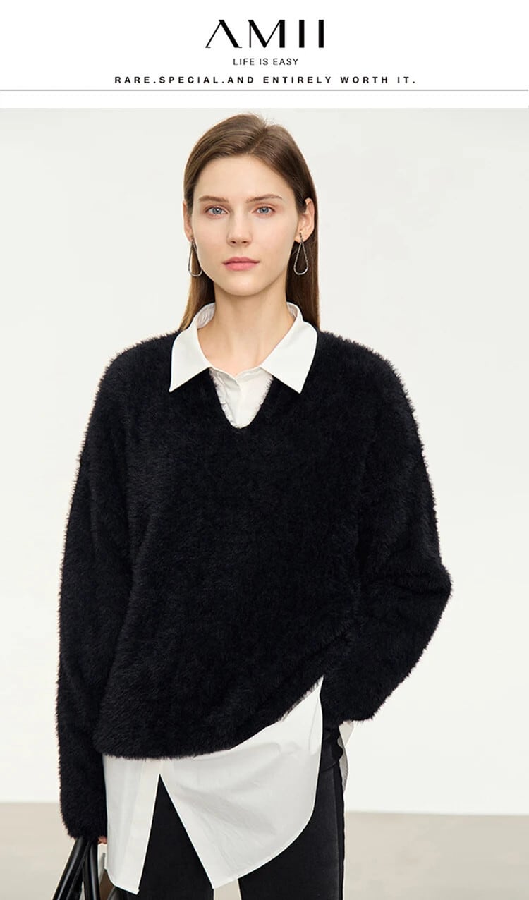 送料無料 アパレル AMII ミニマリストセーター女性 2023 秋シザーカラーオフィスレディルーズソフトソリッドニットプルオーバートップス 12343238 オータム 秋物 ソリッドカラー 会社 学校 通勤や通学にも AE121222382811071414 | mihatudai(みはつばい)ネットショッピングならmihatudai
