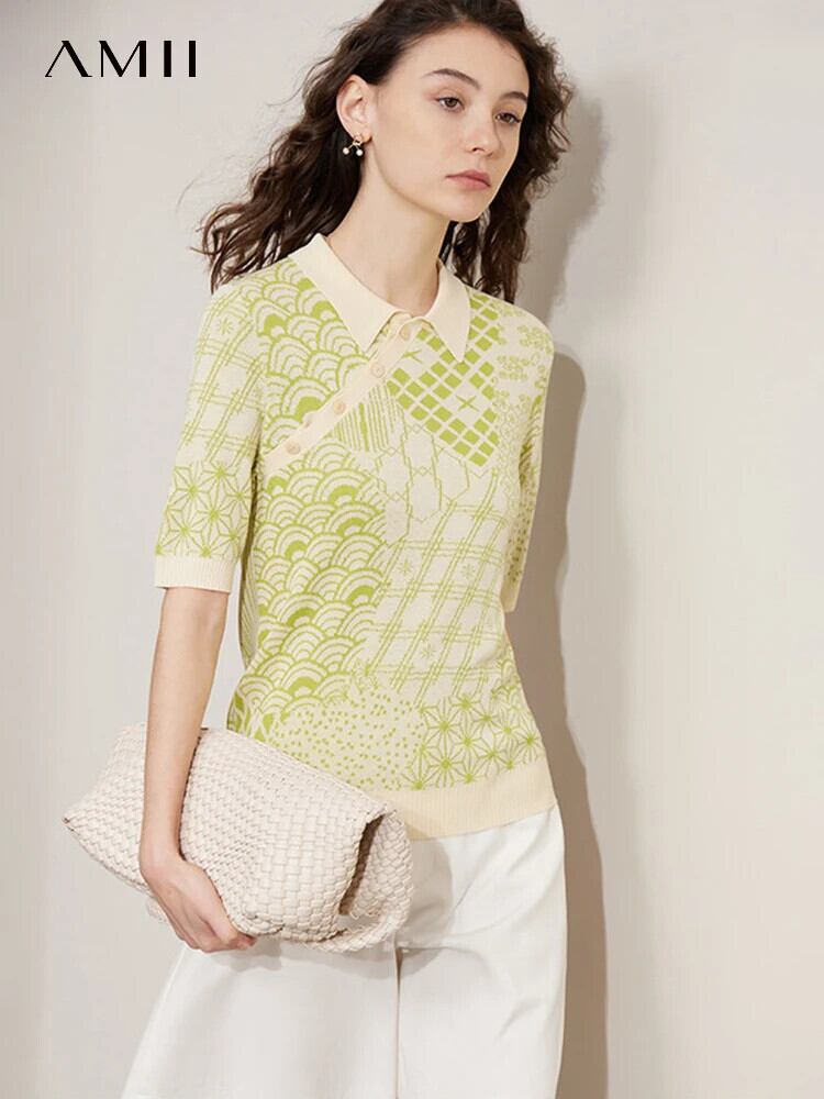送料無料 アパレル AMII ミニマリズムニットトップス女性 2023 春中国風ポロ襟 Tシャツリネン半袖 Tシャツ 12342231 ショート ハーフスリーブ スプリング 春物 AE121222391145991302 | mihatudai(みはつばい)ネットショッピングならmihatudai