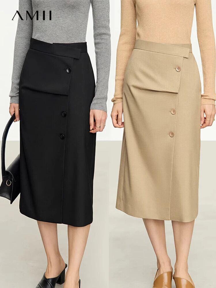 送料無料 アパレル AMII ミニマリズムスカートの女性 2023 秋シンプルな通勤ブレザー A ラインストレート非対称スカート 12353004 オータム 秋物 Aライン AE121222342032253670