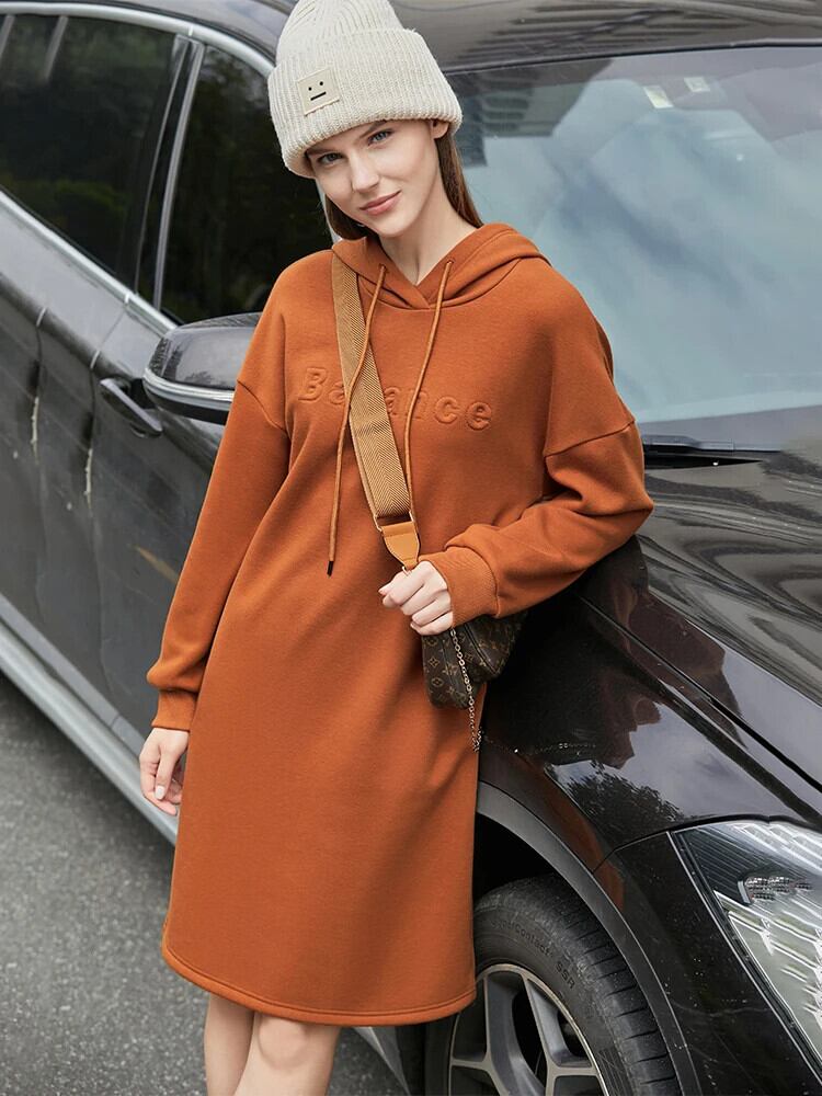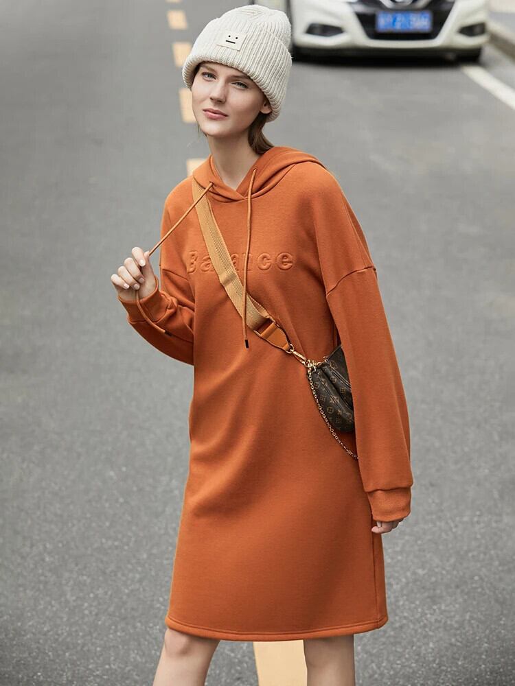 送料無料 アパレル AMII ミニマリズムドレスの女性 2022 冬の手紙刺繍ルーズフード付きレースアップ暖かいドレス Vesitdos 12141229 ウィンター 冬物 AE121222396031875454