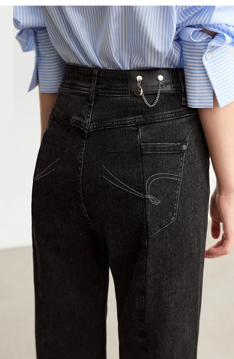 送料無料 アパレル AMII 2023 秋のジーンズの女性ポケットスマイリーチェーンレザーブーツカットレトロパンツトレンディな女性ストレートデニム 12343227 オータム 秋物 AE121222341949473067 | mihatudai(みはつばい)ネットショッピングならmihatudai