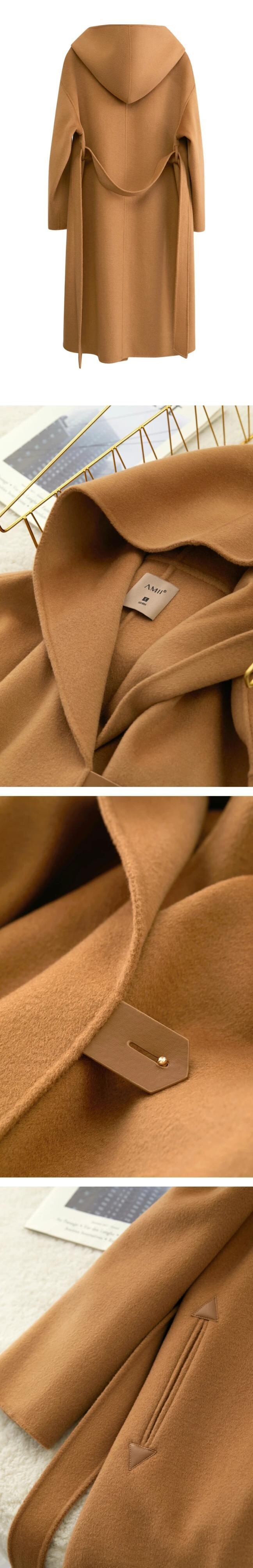 送料無料 アパレル AMII ミニマリズム 100% ウールコートの女性 2022 冬固体暖かい通勤ヴィンテージルーズフード付きベルトウールジャケット 12220159 ウィンター 冬物 ハーネス ソリッドカラー ビンテージ AE12122239436908718