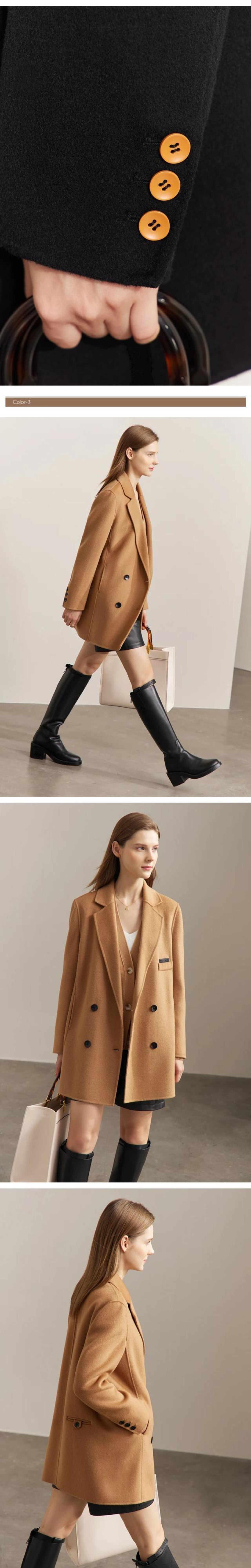 送料無料 アパレル AMII ミニマリズム 100% ウールコートの女性 2022 秋冬暖かいヴィンテージダブルブレストトップス 12220162 オータム 秋物 ウィンター 冬物 ビンテージ AE121222333360177379