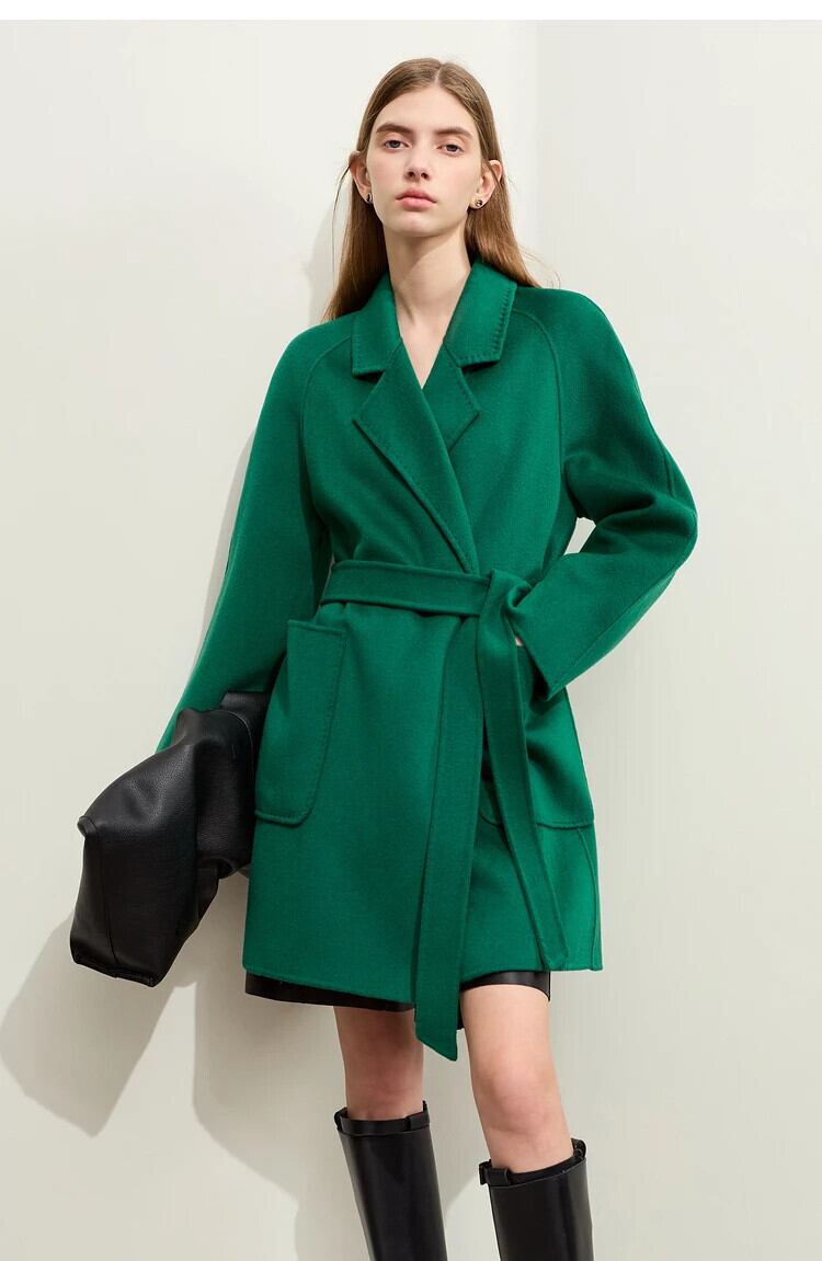 送料無料 アパレル AMII ウールコート女性 2023 ターンダウン襟ラグランスリーブベルトウール両面ロング冬アウター 12344255 ウィンター 冬物 ハーネス AE121222312256774341