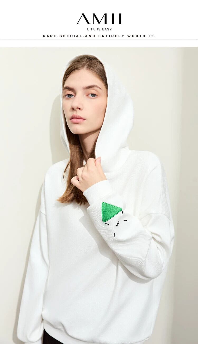送料無料 アパレル AMII ミニマリストフード付きコットンパーカー女性 2023 秋カラーコントラスト幾何刺繍ルーズブラウス 12343411 オータム 秋物 AE121222326991950895 | mihatudai(みはつばい)ネットショッピングならmihatudai