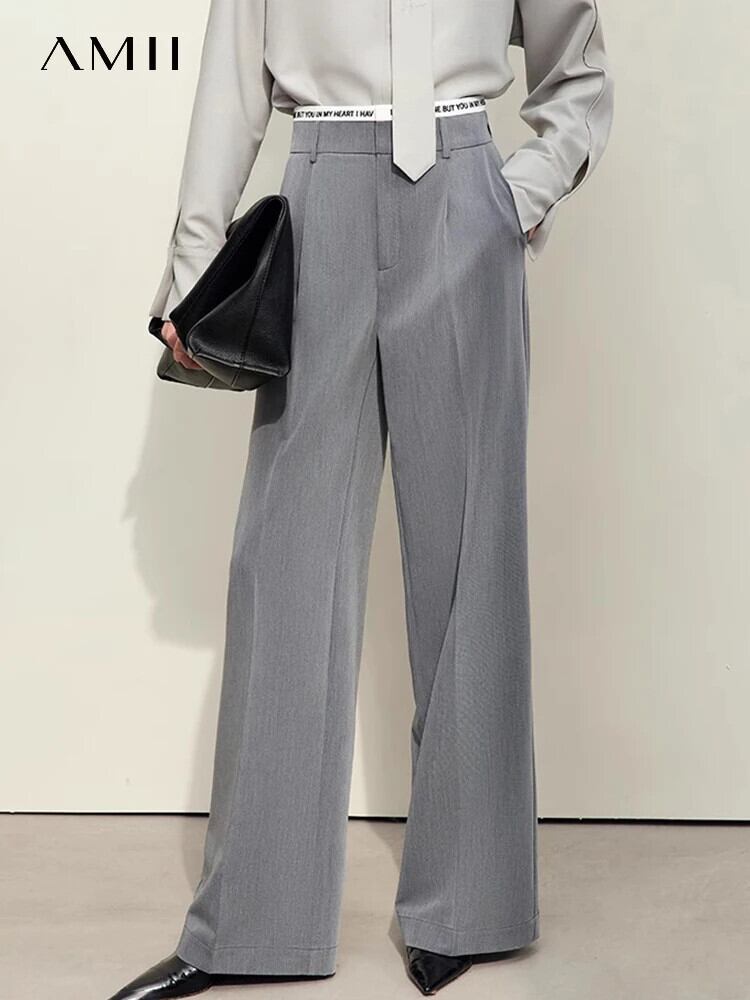 送料無料 アパレル AMII ミニマリズム 2024 女性ワイドレッグパンツ春オフィスレディコントラストカラー刺繍ウエストルーズズボン 12441163 スプリング 春物 ワイドパンツ 会社 学校 通勤や通学にも AE121222380530985286 | mihatudai(みはつばい)ネットショッピングならmihatudai