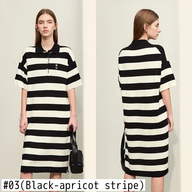 送料無料 アパレル Amii ミニマリズム刺繍ストライプドレス女性 2024 春ポロネック半袖ニットドレスルーズ 12441280 スプリング 春物 AE121222328368099260 | mihatudai(みはつばい)ネットショッピングならmihatudai