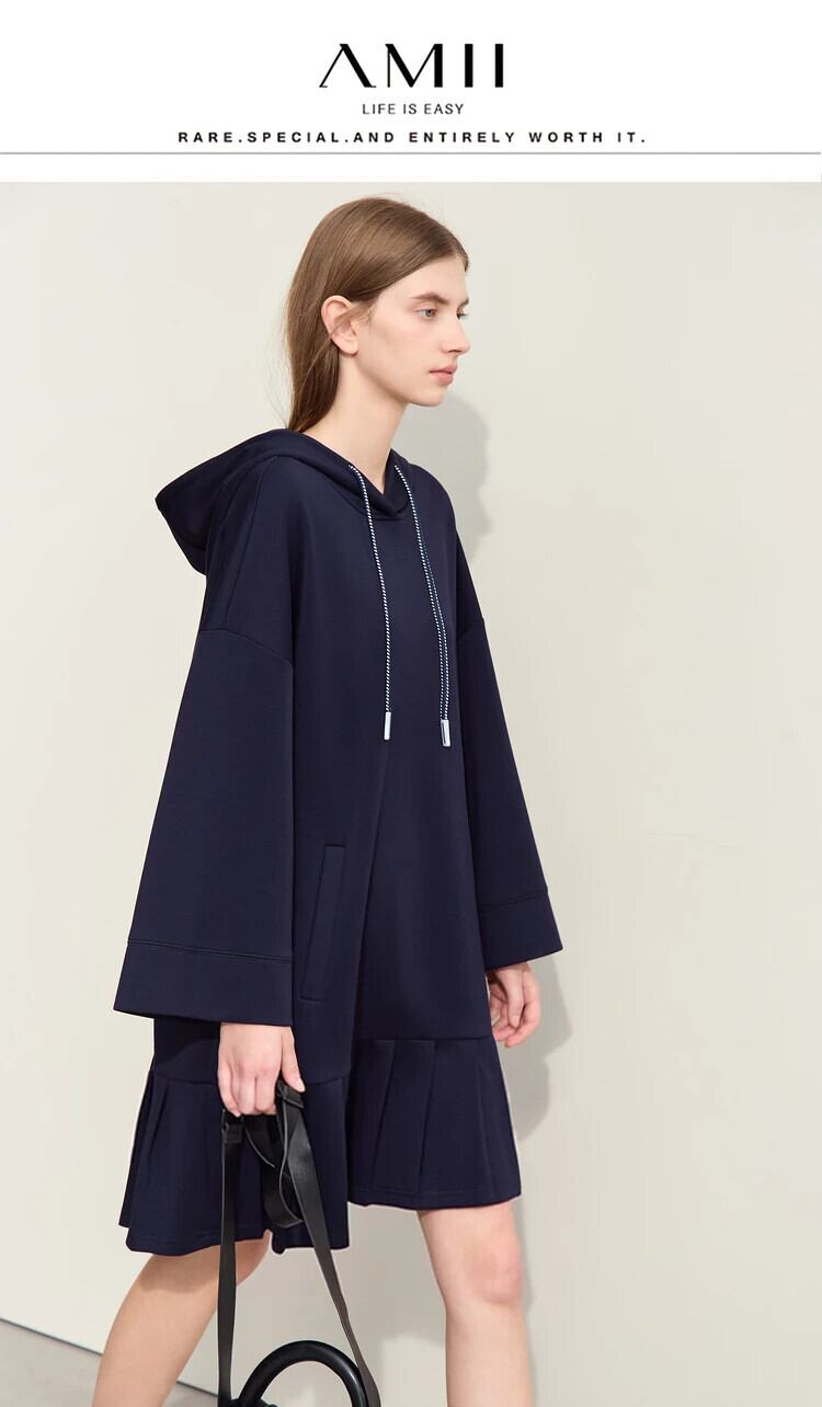 送料無料 アパレル Amii ミニマリズムフード付きドレス女性 2024 春ショルダールーズプルオーバー 3 四半期ストレッチ固体ドレス 12441208 スプリング 春物 ソリッドカラー AE121222329257254823 | mihatudai(みはつばい)ネットショッピングならmihatudai