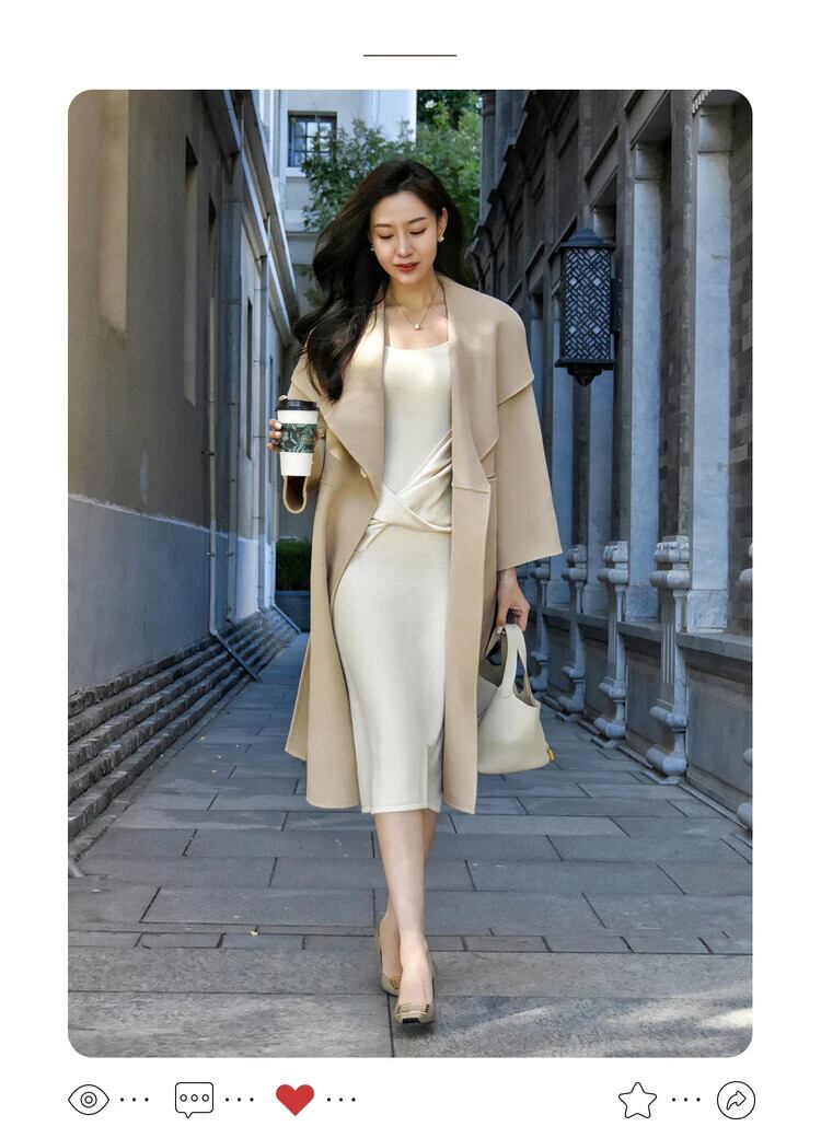 送料無料 アパレル AMII ウール 100% 両面ウールコート女性 2023 冬ルーズラーペルオーバーコートナイトガウンスタイルベルト付き 12354029 ウィンター 冬物 ハーネス AE121222345516237260