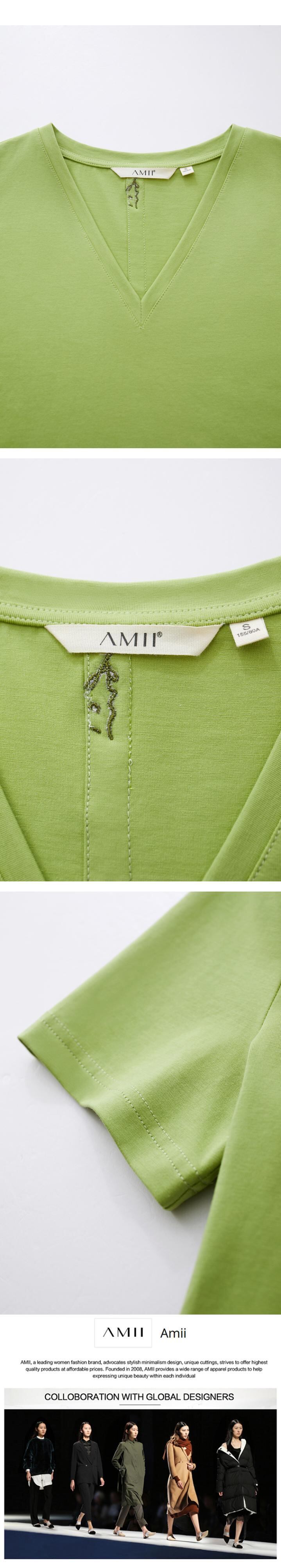 送料無料 アパレル AMII ミニマリズム女性 2023 夏レター刺繍プルオーバースリム半袖 V ネック Tシャツ 12322123 ショート ハーフスリーブ サマー 夏物 Vネック AE121222329482546413 | mihatudai(みはつばい)ネットショッピングならmihatudai