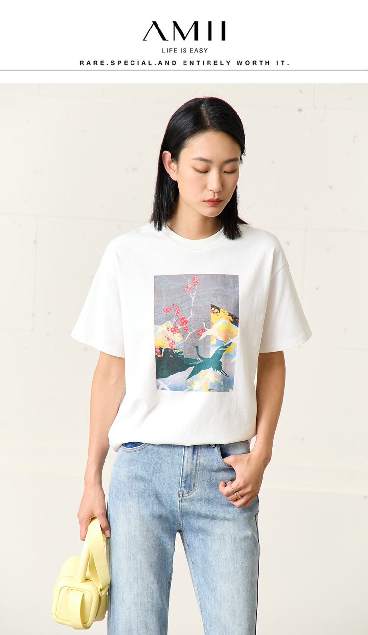 送料無料 アパレル AMII ミニマリズム Tシャツ女性 2023 夏 O ネック半袖シックなプリント綿 100% ルーズ Tシャツ 72352006 ショート コットン サマー 夏物 Oネック AE121222313550592958 | mihatudai(みはつばい)ネットショッピングならmihatudai