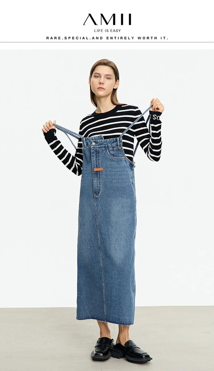 送料無料 アパレル AMII ミニマリストストラップデニムスカートの女性 2023 秋香港スタイルミッドレングスのコットンレトロスカート 12343318 オータム 秋物 AE121222399794422892 | mihatudai(みはつばい)ネットショッピングならmihatudai